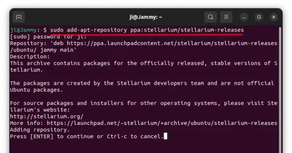 sudo add-apt-repository ppa:stellarium/stellarium-releases