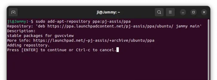 1. First, press Ctrl+Alt+T on keyboard to open terminal. When it opens, run command to add the PPA: