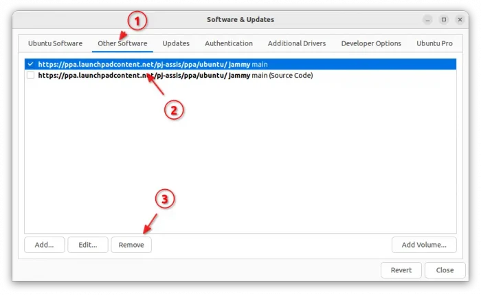sudo add-apt-repository --remove ppa:pj-assis/ppa