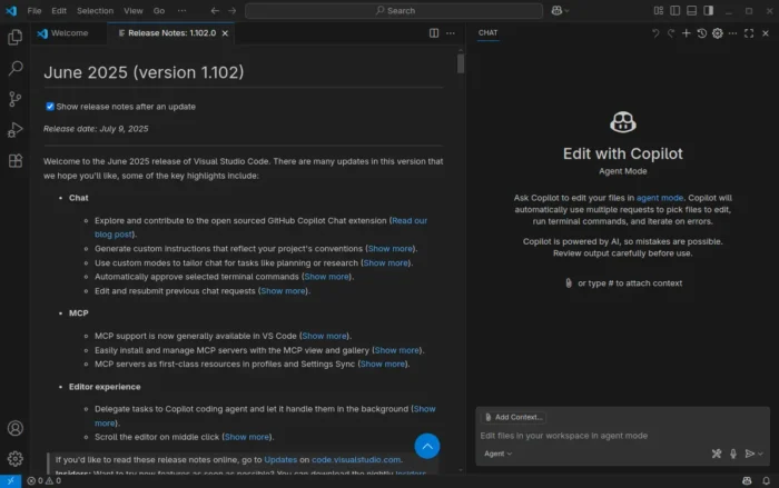 VS Code 1.102 is now generally available, bringing major updates such as Multi‑Cursor Playback (MCP) and an open‑source Copilot Chat extension. These features enhance editing workflows and AI-assisted coding.