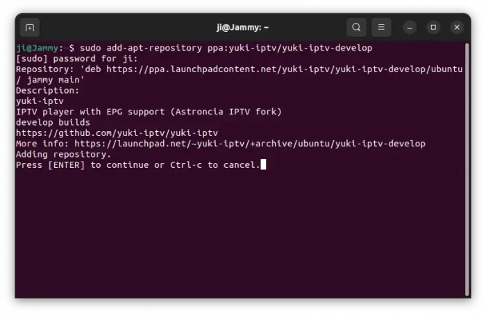 sudo add-apt-repository ppa:yuki-iptv/yuki-iptv-develop